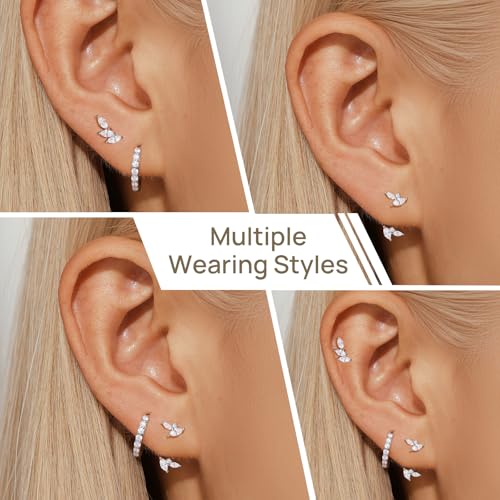 Material: MetalMetal type: Silver 925Back Finding: Push BackEarring design: Front & BackGem type: Cubic ZirconiaItem type name: Hoop EarringsSilver Hoop Earrings Set: 3 pairs stud and hoop earrings in a set, small silver hoop earrings, earring jackets and cubic zirconia stud earrings. Our wings earring sets fulfill women's need for a multi-style ensemble. These hoop earrings are perfect for earring stacksSize and Details: Simple cubic zirconia earrings set for women is made of anti-allergic 925 sterling silver posts and 5A+ cubic zirconia gemstones with white gold plated surface. The inner diameter of the hoops earrings is 10mm/0.39inch, the wings studs are 10mm*4.5mm/0.39inch*0.18inch, and the height of the jacket earrings is 15mm/0.59inch.Suitable for sensitive ears, easy to put on and take off, comfortable to wearSilver Earrings Stacks: Each silver earrings is very classic and design. With stud earrings, huggie earrings and cartilage earrings, you are free to create earrings set that reflects your personal style. The trendy hoop earrings are suitable for different occasions, such as engagement, anniversary, wedding, prom, graduation, partyDainty Present for Women: This silver hoop earrings set comes in a delicate package. The exquisite small stud hoop earrings stacks is perfect for lady, mom, sister, family or friend. It makes great Valentine's Day, Mother's Day, Birthday, Wedding, Anniversary, Christmas or any holiday presentConsiderate Service: Angelady Jewelry is committed to providing original jewellery and a perfect shopping experience. We will reply you within 24 hours if you are not satisfied with any of our products Perfect for everyday use. top-grade materials and excellent craftsmanship ensure long-lasting durability.